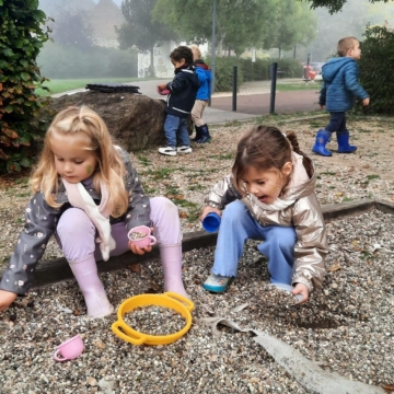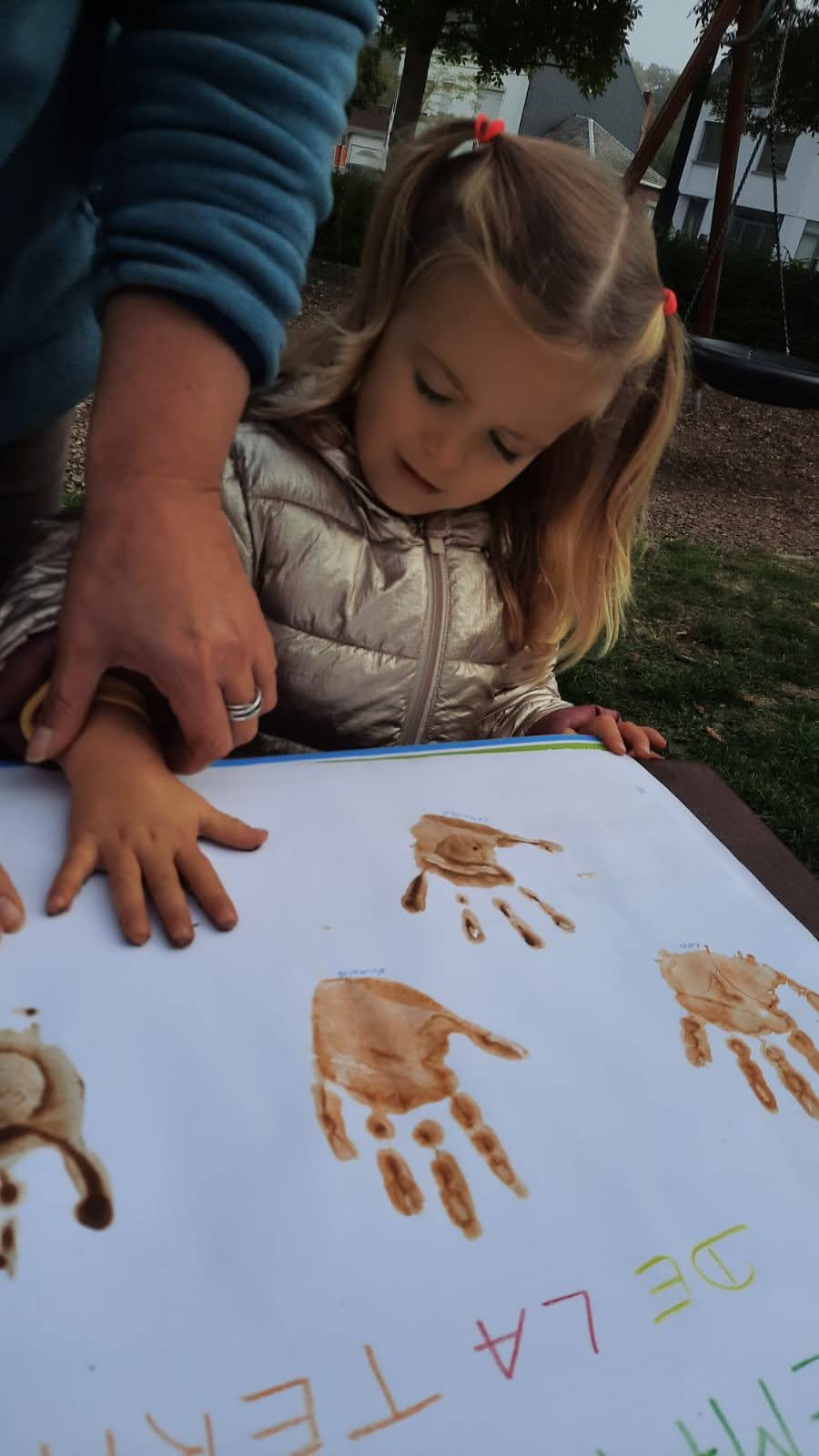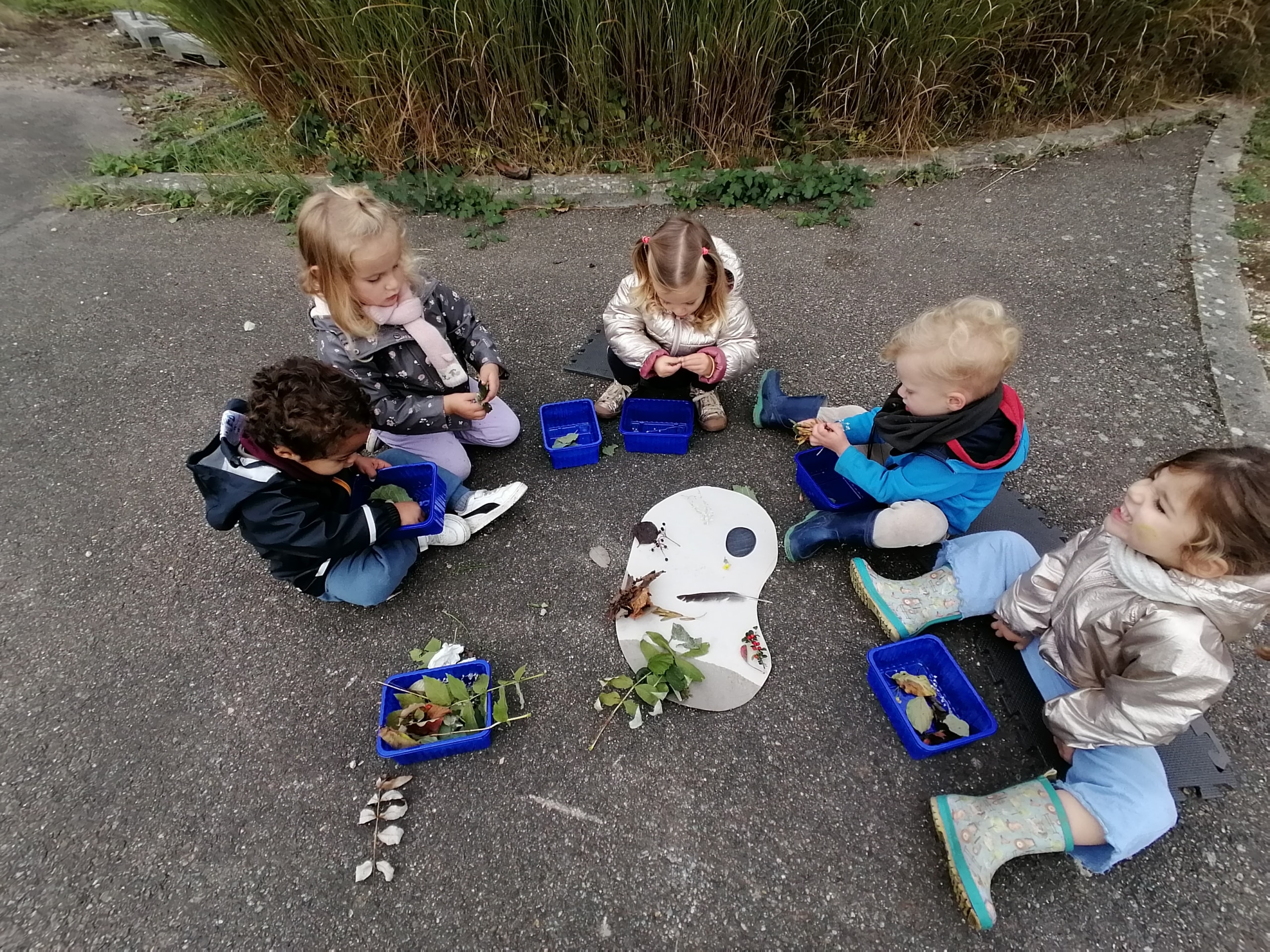 Activités du jour : palette d’automne, peinture Nature (empreintes avec terre, coloriage avec végétaux) et dînette Nature.